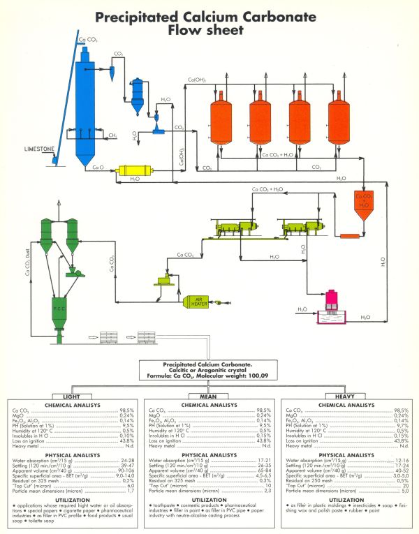 Le prime produzioni industriali di P.C.C. (Carbonato di Calcio Precipitato) risalgono agli inizi del diciottesimo secolo in Inghilterra.
